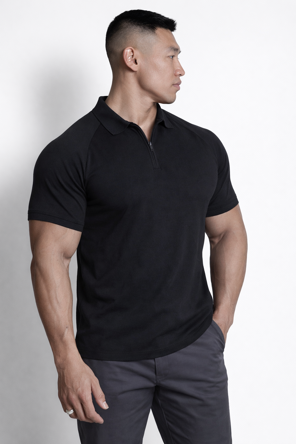 - TGTeddy G.Verified BuyerReviewingPremium Muscle-Fit Polo Tee w/ Zipper - Black M / BlackRated 5 out of 5 stars2 months agoNice product!