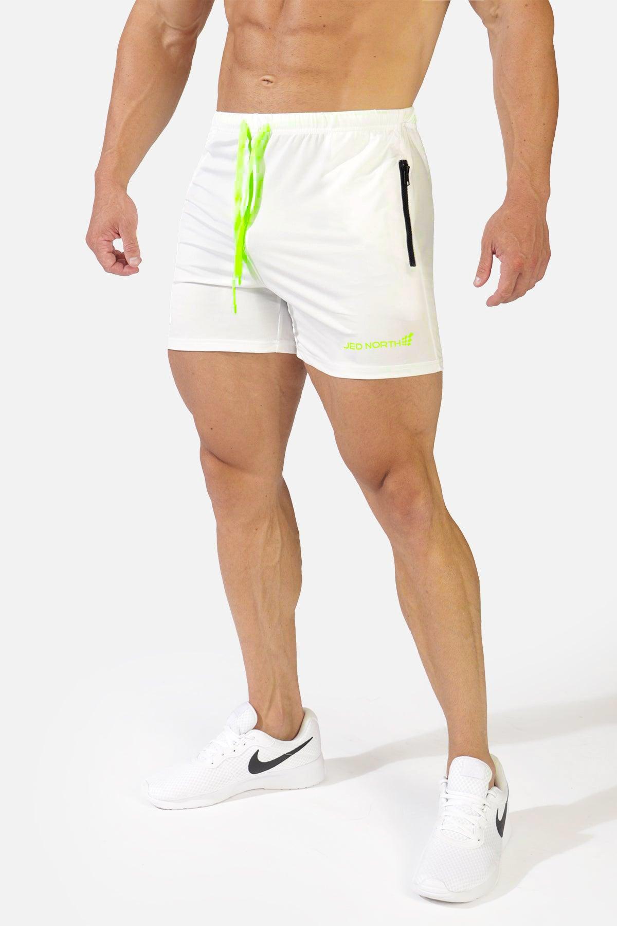 Agile Bodybuilding 4'' Shorts w Zipper Pockets - White - Jed North