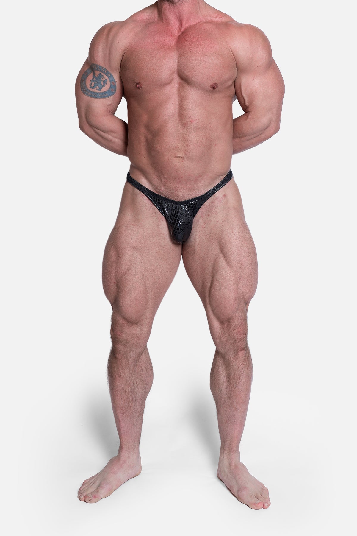 Men's Bodybuilding Posing Trunks - Black Metallic Croc Print