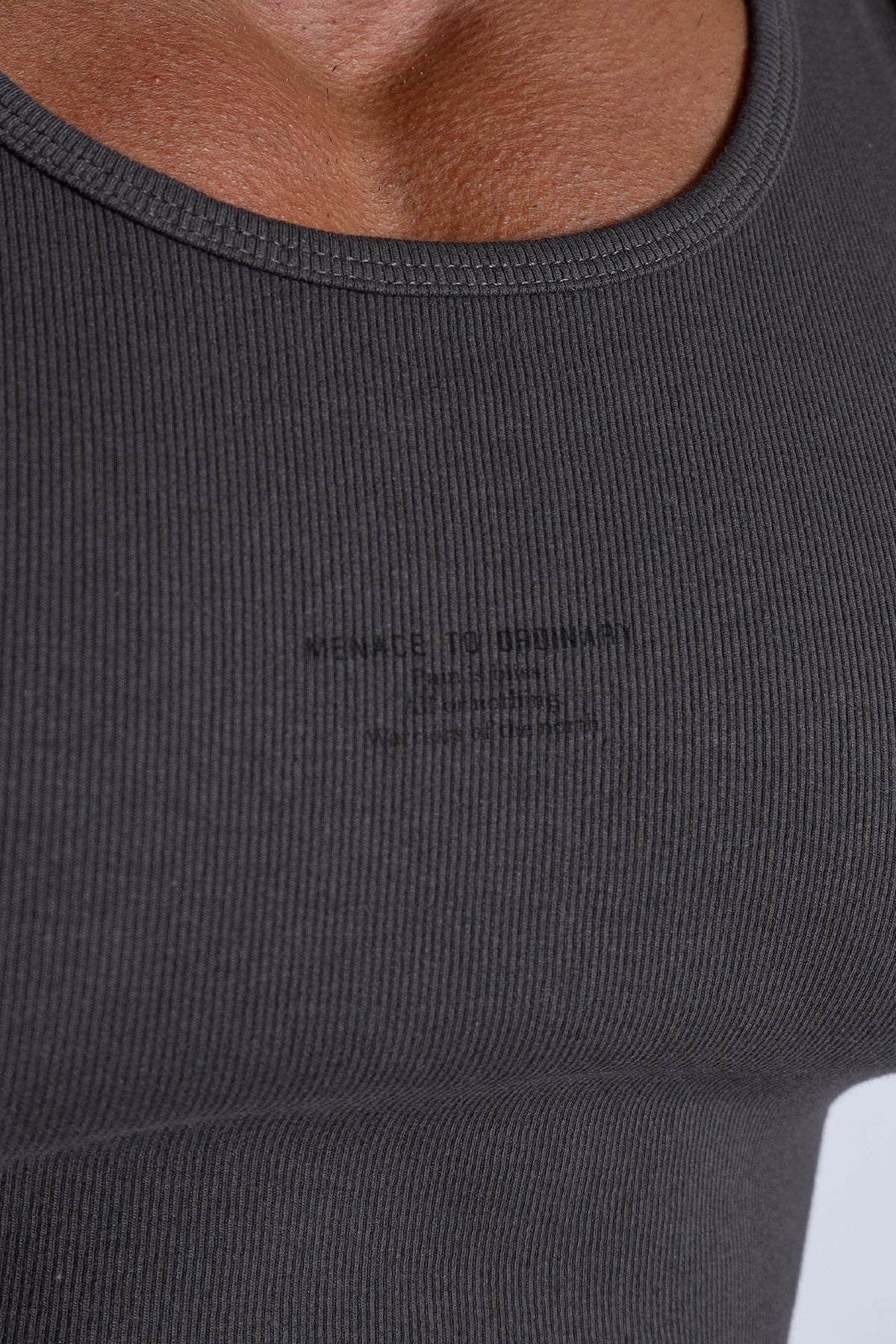 Ribbed Muscle Tank Top - Khaki L / Khaki
